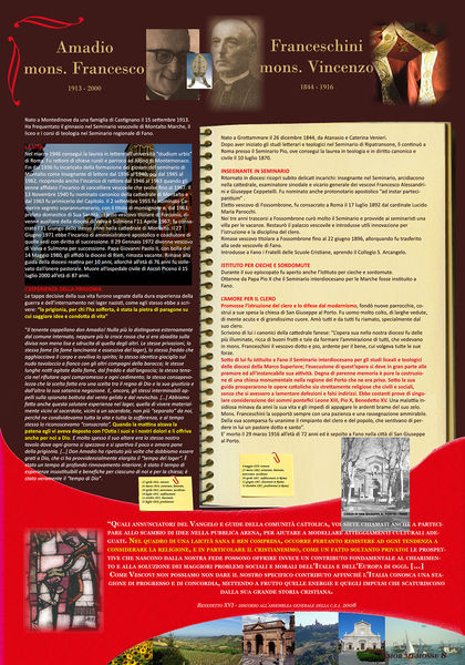 Sfogliando le pagine del libro donatoci da don Vincenzo, la difficoltà maggiore è stata escludere per motivi di spazio tanti preti che avrebbero meritato un posto in questa mostra. Solitamente il sacerdote è visto o come una figura accessoria, non “produttiva” della società oppure come un funzionario addetto alle benedizioni e all’organizzazione di piani pastorali. Leggendo le pagine di questo libro, emergono figure di uomini che, fedeli al ministero ricevuto, hanno dato tutti i talenti posseduti per il popolo loro affidato. Chi socialmente e culturalmente, chi non lasciando mai vuoto il posto nel confessionale, chi inventando sistemi per aiutare i miseri ad elevarsi. Di seguito vedrete dei volti; a qualcuno probabilmente saranno noti, ma ne scoprirete appieno la loro grandezza."